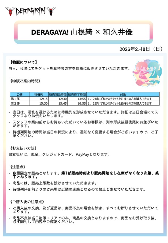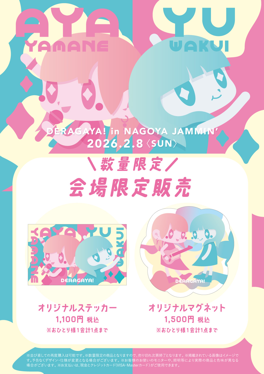 2月8日開催の「DERAGAYA! 山根綺 × 和久井優」のトークイベントにて、オリジナルグッズの販売を決定いたしました。